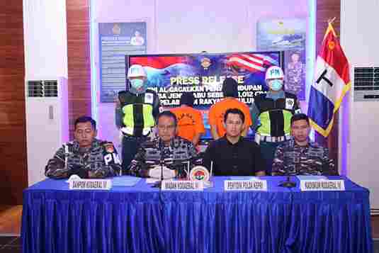 Wakil Komandan Kodaeral IV Laksamana Pertama TNI Ketut Budiantara, S.E., M.Han dalam siaran pers yang digelar di Mako Kodaeral IV menyebutkan, penangkapan bermula dari laporan warga tentang dua orang mencurigakan yang turun dari speed boat asal Malaysia.