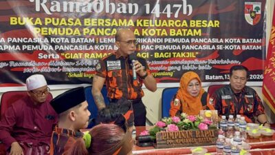 BATAM – Semangat berbagi di bulan suci Ramadhan kembali ditunjukkan oleh keluarga besar Pemuda Pancasila (PP) Kota Batam. Bertempat di salah satu titik strategis Kota Batam, Majelis Pimpinan Cabang (MPC) PP Kota Batam bersama PC Satuan Siswa, Pelajar, dan Mahasiswa (Sapma) PP Kota Batam serta DPC Srikandi PP Kota Batam membagikan sedikitnya 1.000 paket takjil kepada masyarakat pada Jumat, 12 Maret 2026.