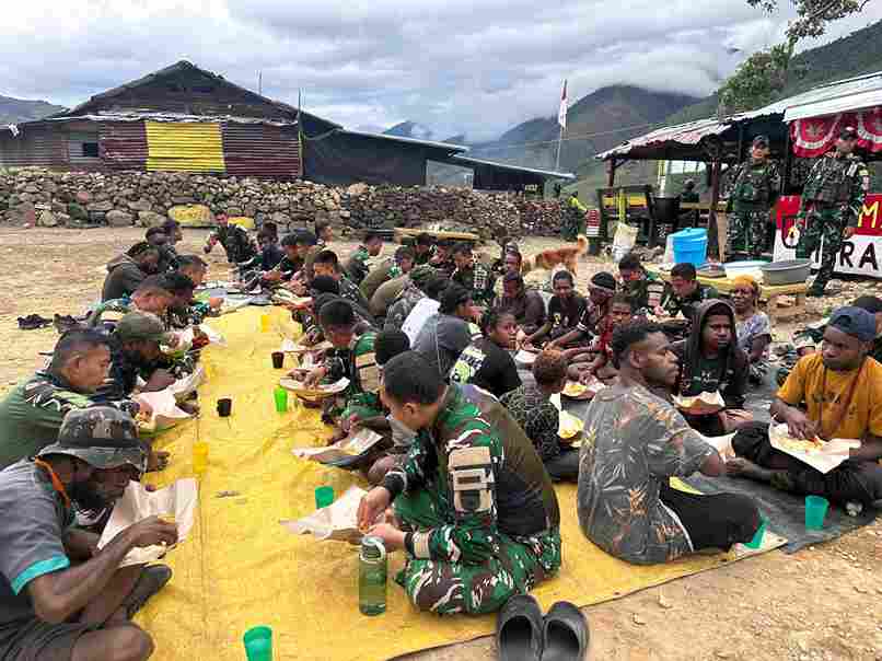 PRAWARAKEPRI.COM BATAM, – PUNCAK JAYA – Dalam rangka mempererat hubungan kekeluargaan dan membangun keharmonisan dengan masyarakat, Jum’at (20/02/2026) Satgas Yonif 136/TS melaksanakan kegiatan makan bersama warga Distrik Ilu, Kabupaten Puncak Jaya, Provinsi Papua Tengah.