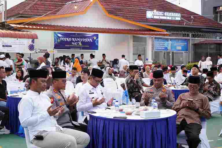 Para tamu yang hadir juga menikmati berbagai hidangan berbuka yang telah disediakan, termasuk aneka makanan dan minuman dari stand UMKM yang turut meramaikan kegiatan tersebut.