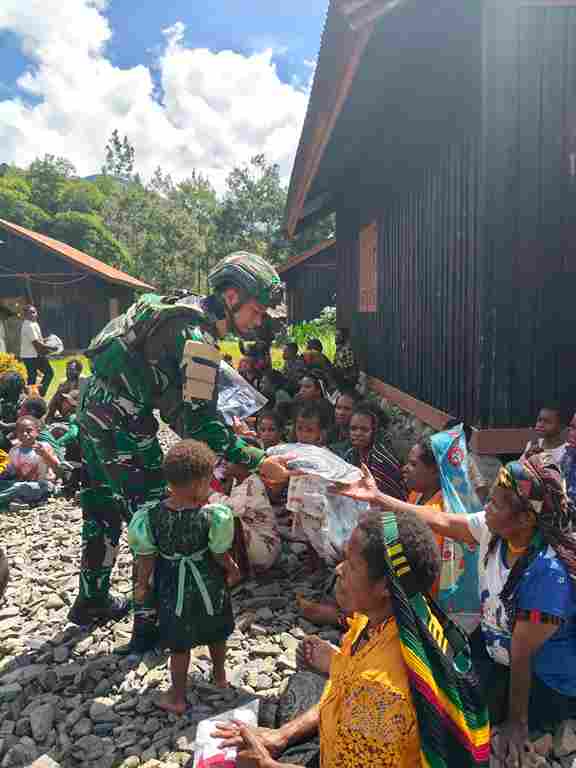 Senyum yang merekah dan tangan yang saling menggenggam menjadi saksi bahwa kehadiran prajurit bukan hanya sebagai penjaga keamanan, tetapi juga sebagai saudara.
