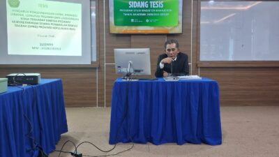 Politisi yang juga menjabat sebagai Bendahara DPW PKB Kepulauan Riau ini tampil lugas mempertahankan hasil penelitiannya di hadapan dewan penguji. Sidang ini merupakan bagian dari rangkaian ujian tesis yang dilaksanakan UIS selama tiga hari, mulai 8 hingga 10 April 2026, dengan total peserta sekitar 45 orang.